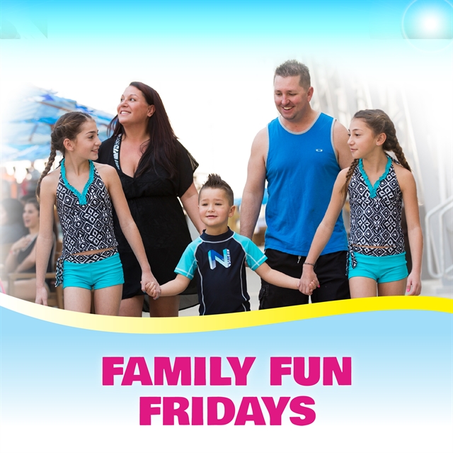 Join us for a day of family fun with the Epic Waters Family Valid ALL DAY on Fridays. Epic Waters Family Fun Package includes admission for 4, 1 Whole Pizza, and 4 Soft Drinks.